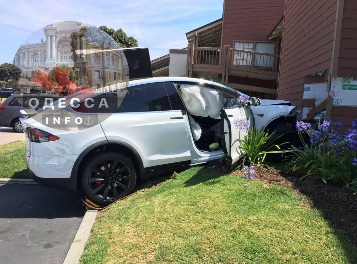 В Одесі п'яна жінка за кермом автомобіля Tesla влаштувала епічну ДТП, вилетівши на клумбу.