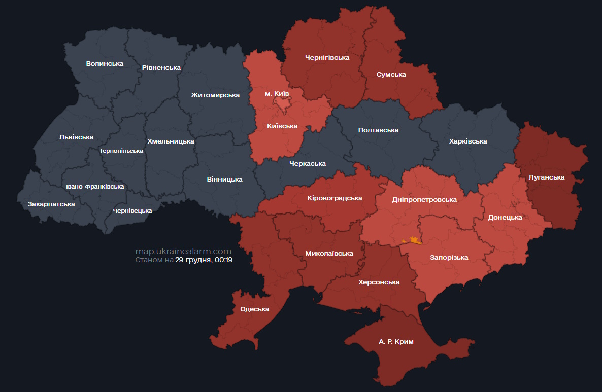 У ніч проти 29 грудня російські окупанти атакували Україну безпілотниками: один із них потрапив у багатоповерхівку Одеси.