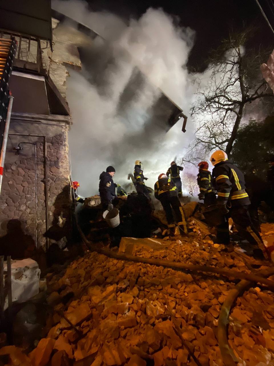 У свою чергу, пресслужба ДСНС зазначила, що з-під завалу врятовано дві людини, з них одна дитина. Також додали, що вибух стався о 20:48.