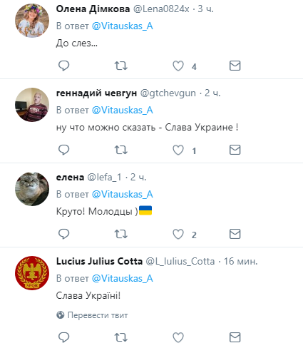 "Красені)", "Дивно що орки не вибігли", "Молодці так тримати!!!", "Очевидно ранній ранок, усі приДуНеРівці сплять з перепою", "ну що можна сказати - Слава Україні!", "До сліз ..." , "Це сильно!", - пишуть коментатори.