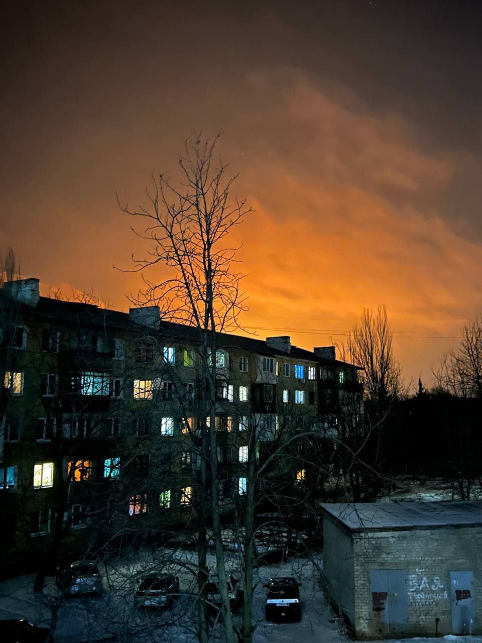 Також підтверджують це фото та відео. На них видно, як щось горить та величезну заграву, що здіймається в небо над житловими будинками.