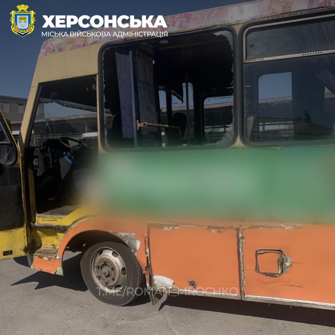 Росіяни скинули з дрона вибухівку на автобус у передмісті Херсона.