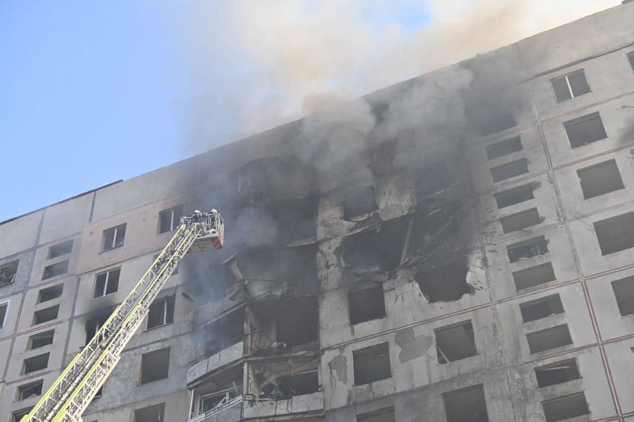 "Ворог влучив у 10 поверх будинка, пожежа охопила чотири поверхи - від 9-го по 12-й", - повідомив він.