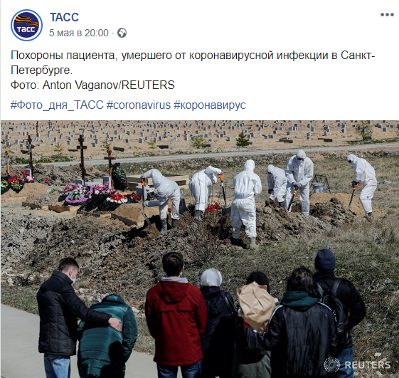 Тим часом в мережі показали моторошне фото з похорону зараженого коронавірусів в Санкт-Петербурзі