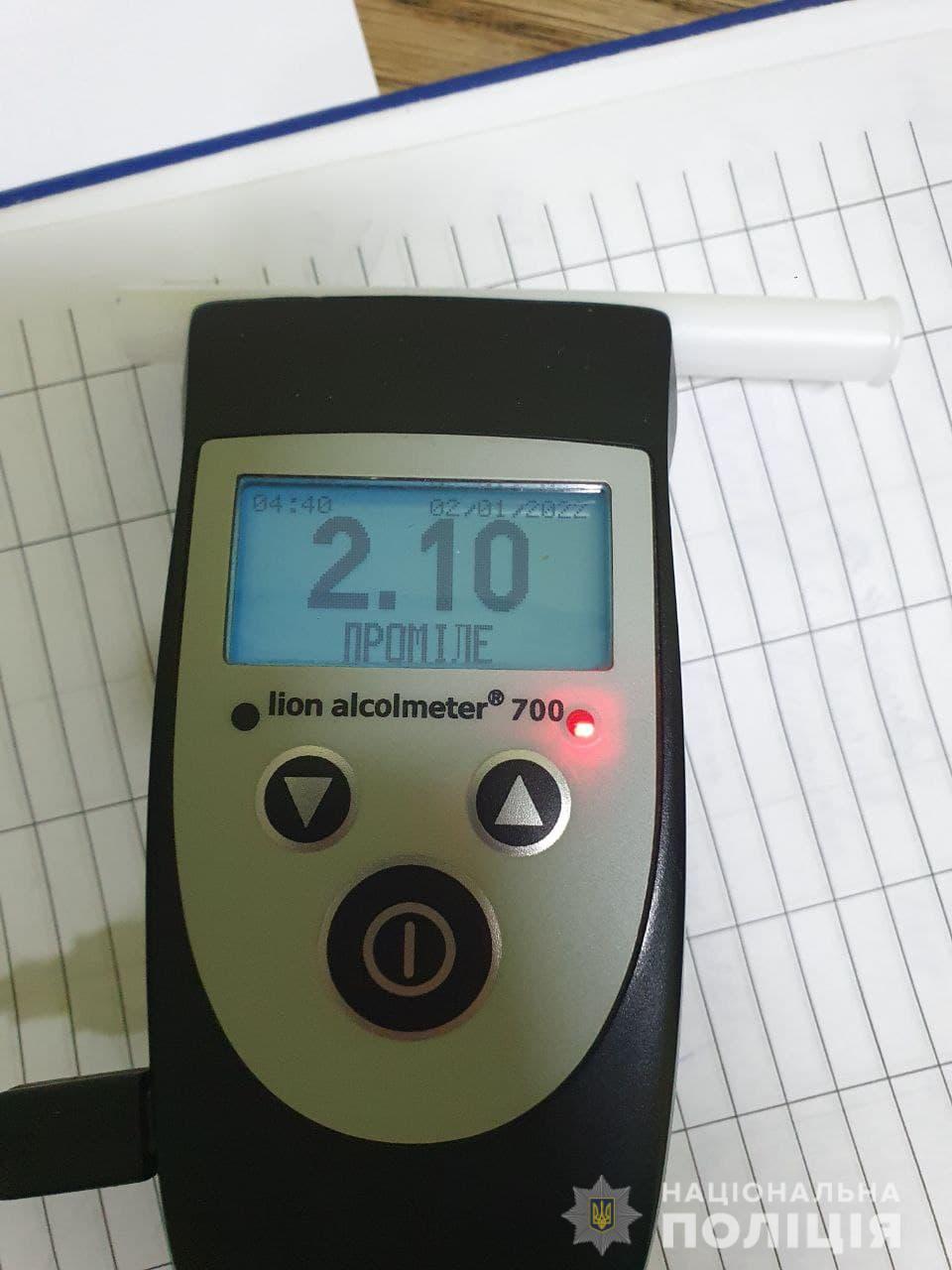 Копи погналися за втікачем та виявили Audi з механічними пошкодженнями на вулиці Дорошенка. Водій та пасажир поводилися агресивно, тому на них одягли наручники. Алкотестер показав, що у крові 24-річного мешканця села Бармаки було 2,10 проміле алкоголю, що в 10 разів перевищує дозволену норму.