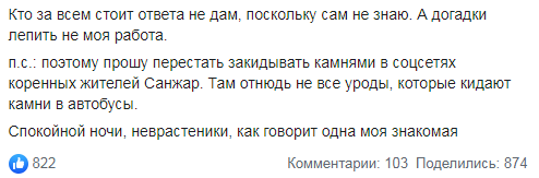 За його словами, більшість місцевих жителів висловилися "за" прибуття евакуйованих в Санжари. Лише одиниці висловилися проти. Виходячи з цього стало відомо, що багато протестуючих не місцеві.