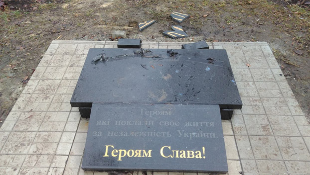 Відзначається, що інцидент стався в ніч з 1 на 2 січня. Невідомі зловмисники розбили пам'ятник і повалили на землю дві плити із зображенням прапора України та словами з гімну.
