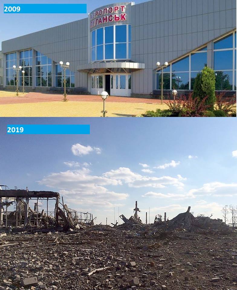 Підтримуючи популярний в мережі челлендж (10yearschallange), журналіст Євген Спірін показав фото Луганського аеропорту різницею в 10 років.