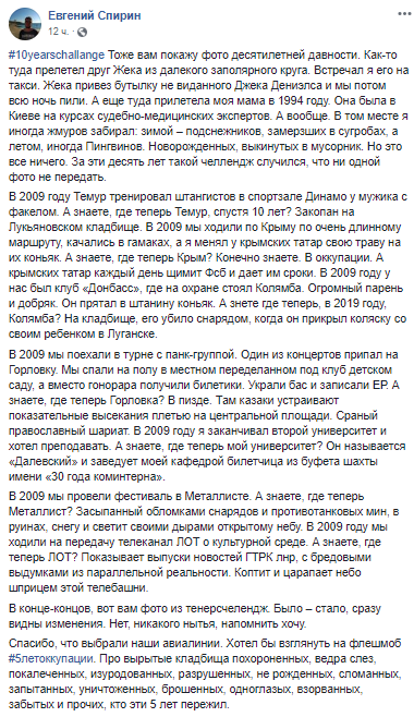 Спасибі, що вибрали наші авіалінії. Хотів би поглянути на флешмоб "5 років окупації". Про вириті кладовища похованих, відра сліз, покалічених, знівечених, зруйнованих, ненароджених, зламаних, закатували, знищених, кинутих, однооких, підірваних, забутих і інших, хто ці 5 років пережив", - написав він.