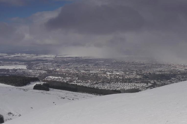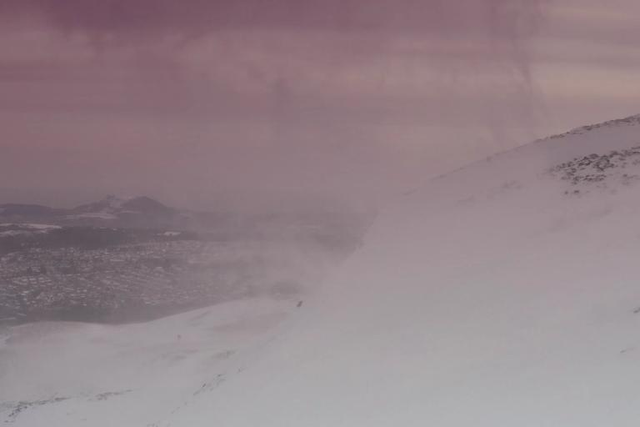 В Едінбурзі фотограф Кевін Кіркза допомогою свого безпілотника зняв сноунадо 13 лютого вранці, коли сходило сонце.