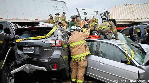 Аварія сталася на трасі 35 на території штату Техас. На ділянці траси в районі Форт-Уорта зіткнулися більше 100 автомобілів. На даний час відомо про 5 загиблих, 36 людей було доставлено до лікарень з травмами різного ступеню.