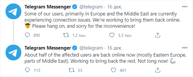 У середу, 16 грудня, в роботі месенджера Telegram стався масштабний збій, внаслідок якого постраждали і користувачі в Україні.