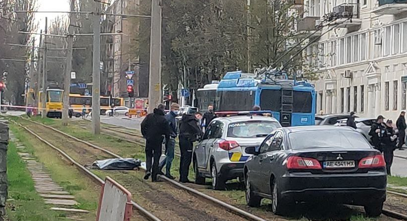 З опублікованого знімку видно, що тіло загиблого лежить на трамвайних коліях.