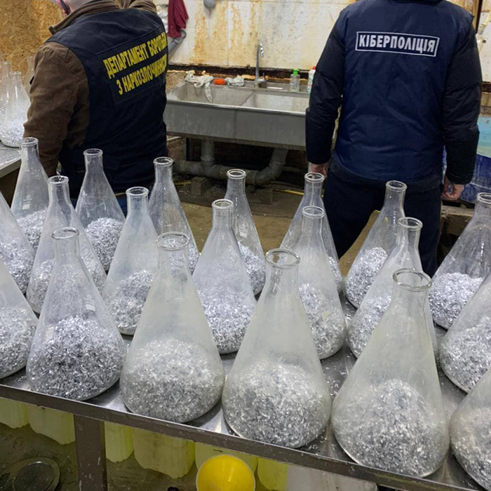 Лабораторія працювала на базі промислового підприємства в місті. Там зловмисники виготовляли психотропні речовини, а потім займалися їх масовим збутом через Telegram-канали та інтернет-магазин KLANAMFA по всій Україні.