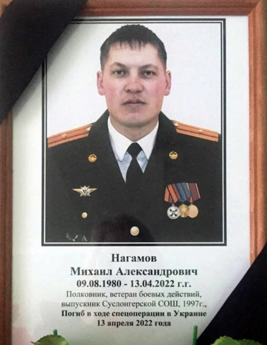 "Уродженець Суслонгера (Марій Ел) командир полковник Нагамов Михайло Олександрович 1980 р.н. десь геть-чисто денацифікувався 13/04/22. Жаль, звичайно, що нічого не пишуть про його геройський подвиг", - йдеться у повідомленні.