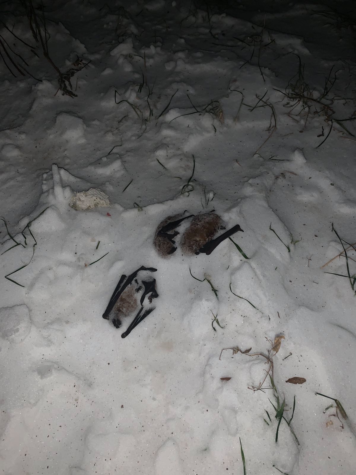 "Приклад людської жорстокості. Кажани викинуті з багатоповерхівки на вулицю при морозі -15 градусів. Спочатку нам повідомили про знахідку в Херсоні, вулиця Покришева, Алена Беспалько поїхала рятувати, але було вже запізно, кажани провели на землі добу зі слів жителів будунку. 16 рудих вечірниць - всі загинули.