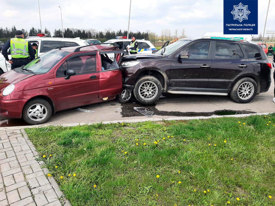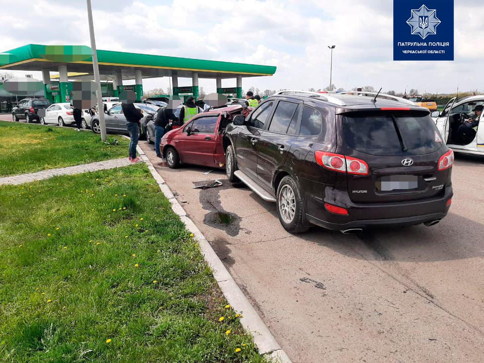 В Умані жінка за кермом автомобіля Hyundai Santa Fe протаранила п'ять машин - Daewoo Matiz, Honda Accord, Mazda 3, Toyota Auris і Volkswagen Passat CC.