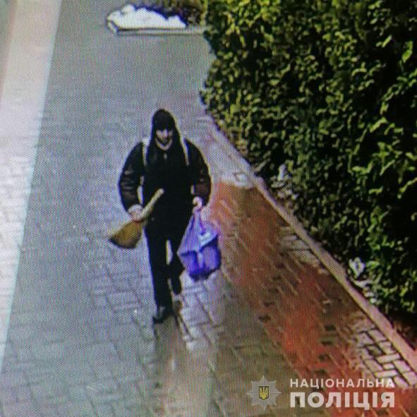 Судячи з опублікованих фотографій, в руках чоловік ніс віник. Також у нього був синій пакет, в який, судячи з усього, він склав вкрадені мощі.