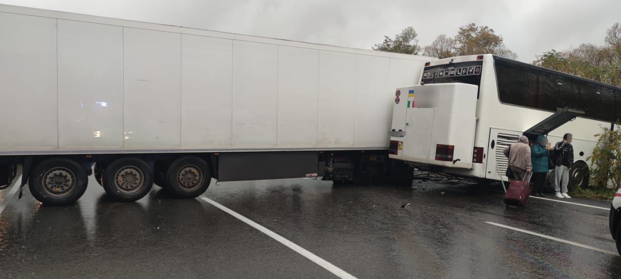 Встановлено, що на даному відрізку дороги зіткнулися вантажівка "MАN", під керуванням 33-річного жителя міста Калуш Івано-Франківської області, та рейсовий автобус "VAN HOOL", який здійснював міжнародні перевезення за маршрутом "Тернопіль-Рим".