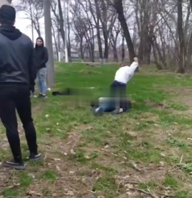 На опублікованих кадрах видно, як старша школярка жорстоко б'є свою молодшу суперницю. Ніхто з присутніх хлопців навіть не подумав припинити це жахливе видовище.
