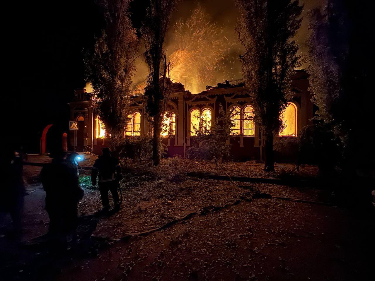 "У Гуляйполі під час нічного обстрілу знищено історичну пам"ятку - краєзнавчий музей. Будівля спалахнула внаслідок влучання снаряда та вигоріла вщент. Також побиті домоволодіння мирного населення, господарські будівлі, знищене особисте майно громадян", - йдеться у повідомленні поліції Запорізької області.