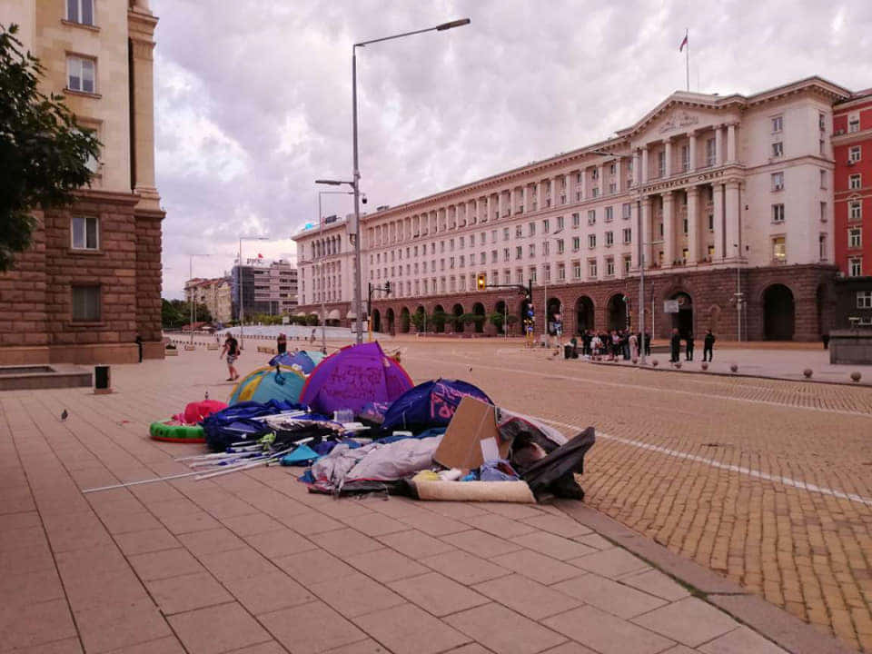 У Софії близько 5 ранку всі намети та особисті речі маніфестантів були викинуті на сусідній тротуар. У мітингувальників було кілька хвилин, щоб забрати свої особисті речі, після чого намети та все інше було завантажено на вантажівку та вивезено.