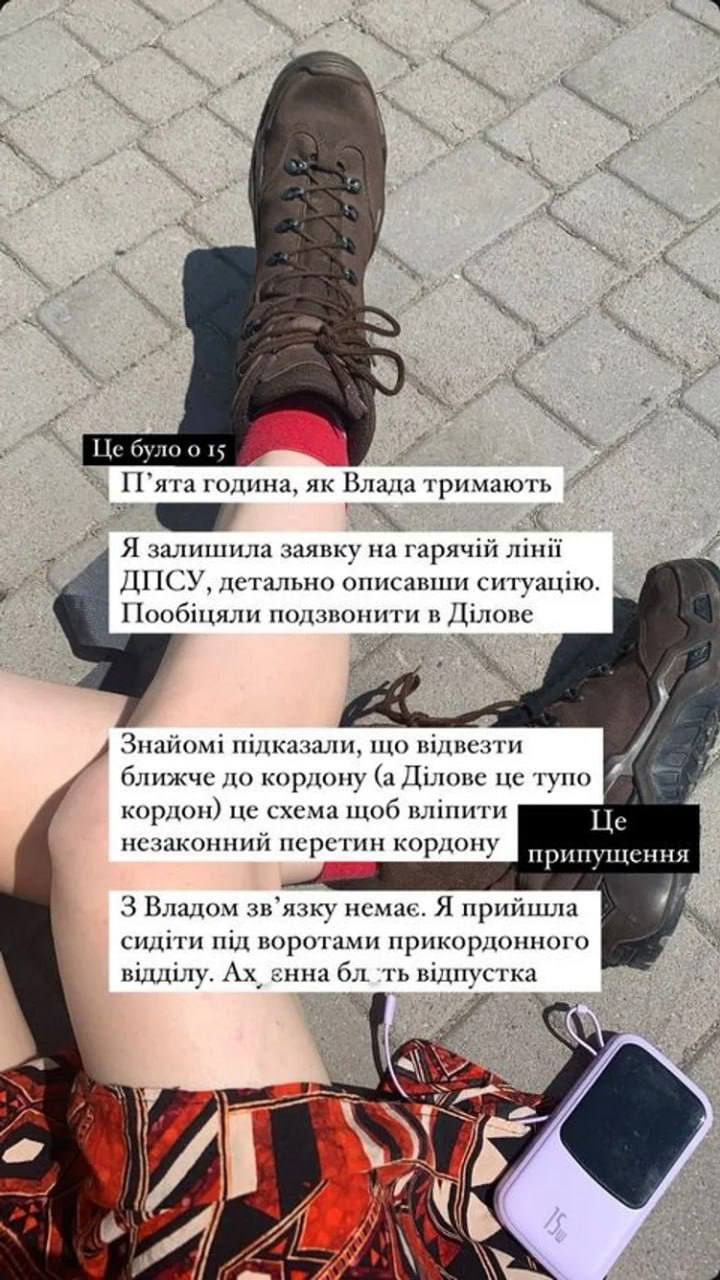 "... навіть спеціально вибрали найпопулярніший маршрут і, звісно, не прикордонний. Жодної причини затримувати Влада не було", – пише дівчина.