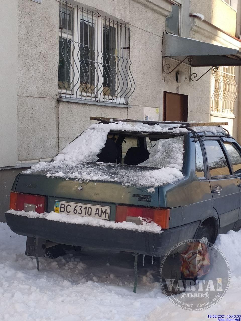 На вул. Зеленій, 147 з даху будинку впала снігова брила на автомобіль ВАЗ, розбивши лобове скло та пошкодивши сам автомобіль. Також в цей день снігові брили впали на автомобілі на вулиці Пасічній та Огієнка.