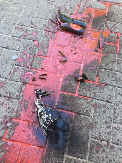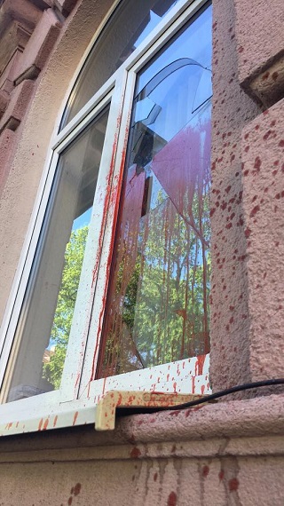 За його словами, в офіс кинули дві пляшки. Одна була наповнена червоною фарбою, а друга – запальною сумішшю. Пляшка з "коктейлем Молотова" пробила скло у вікні офісу і відскочивши, вигоріла на вулиці.