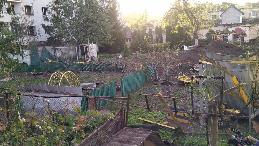 "Тут стояв дитячий павільйон, наш дитячий садочок "Казка", і ракета прямо влучила в цей дитячий павільйон. Є воронка 20 метрів і 9 метрів глибини. І там хвіст ракети фактично застряг", – розповів Садовий.