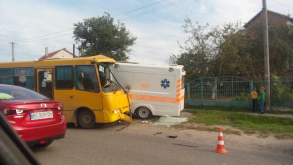 Сьогодні, 16 вересня, близько 11:00 в місті Пустомити Львівської області на вулиці Шевченка п'яний водій автобуса врізався в автомобіль "швидкої допомоги".