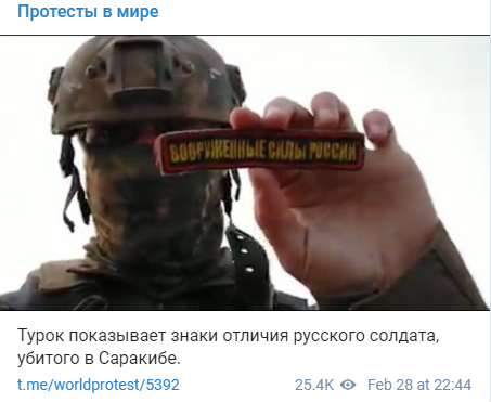 У п'ятницю, 28 лютого, Міністерство оборони Туреччини заявило, що сирійські війська Башара Асада і російські найманці знову пішли на провокацію, вбивши одного їх військового і ще двох поранив, однак отримали гідну відповідь.