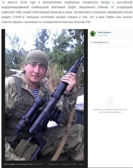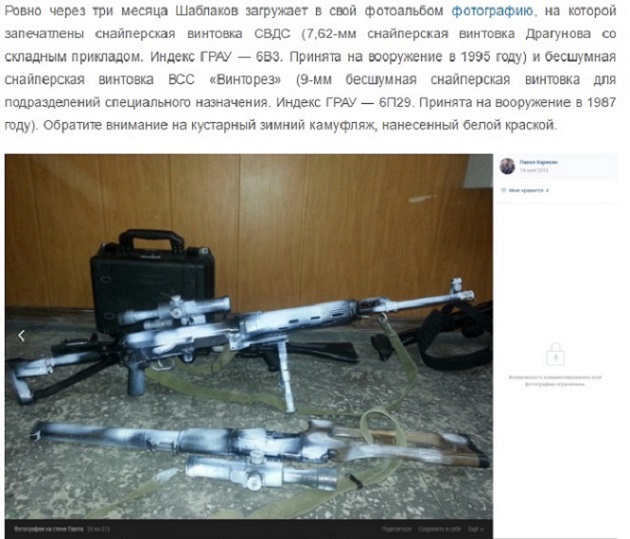 На сторінці Павла Шаблакова з Челябінська, який воює на Донбасі, опубліковані кілька фотографій, на яких зображено новітня снайперська зброя російського виробництва.