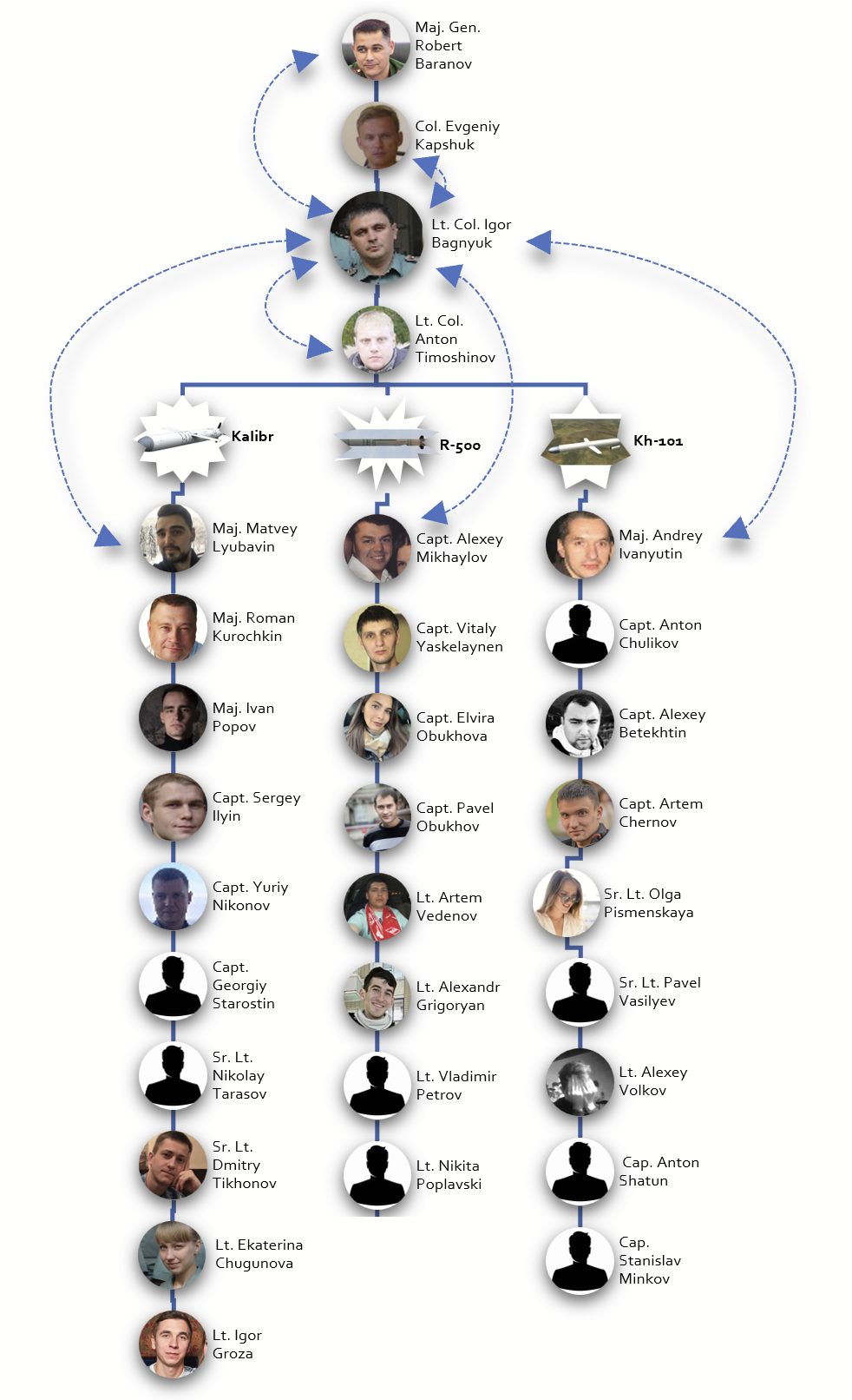 "Ідентифікація цієї підпільної групи в Міністерстві оборони РФ була зроблена шляхом аналізу відкритих джерел даних про тисячі випускників провідних російських військових інститутів, які спеціалізуються на ракетній інженерії та програмуванні, зокрема Військової академії РВСН поблизу м. Балашиха. Москва та Військово-морський інженерний інститут у Пушкінському передмісті Санкт-Петербурга. Початкова гіпотеза полягала в тому, що ці провідні військові інститути могли стати полігоном для навчання принаймні деяких офіцерів, які зараз програмують найдосконаліші російські ракети великої дальності", - пояснили свої методи розслідувачі.