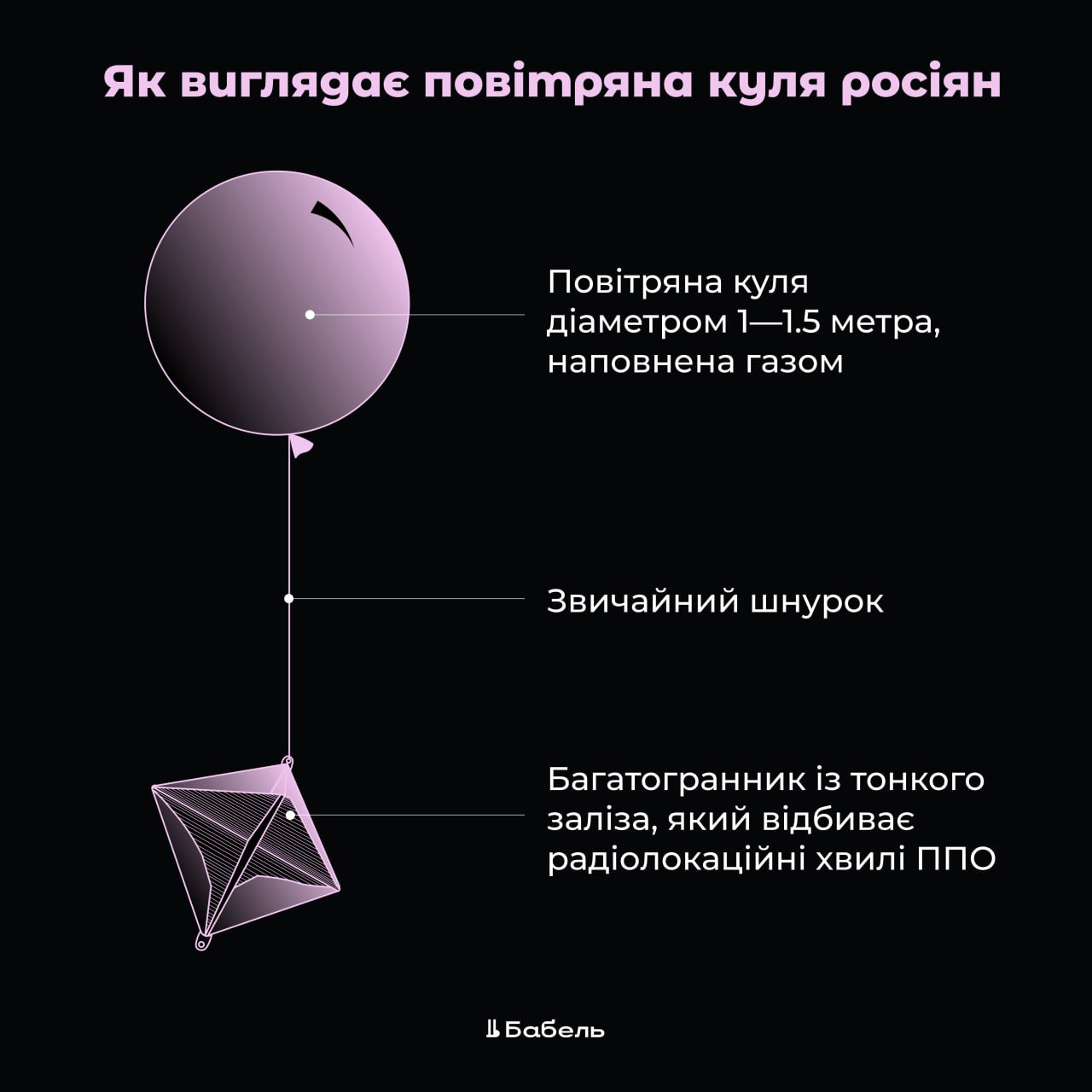 Так, "повітряні кулі", що запускаються окупаційними військами діаметром 1-1,5 метра, наповнені газом, тримають на звичайному шнурку багатогранник з тонкого заліза, що відображає радіолокаційні хвилі ППО. Вони практично нічого не варті росіянам, натомість Україна витрачає багато ресурсів, щоб збити об'єкт. Проте саме з цією метою ворог і запускає кулі в небо.