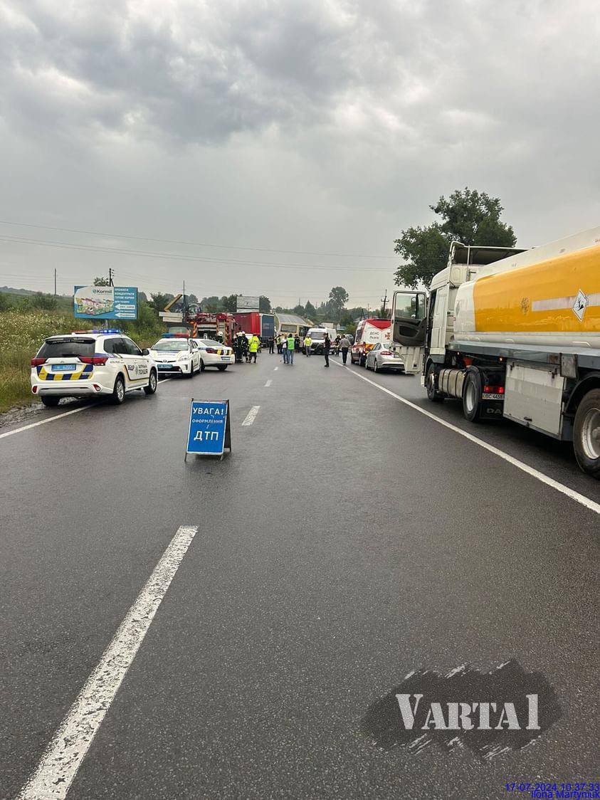 Він також опублікував фото з місця аварії та повідомив, що траса Львів-Франківськ перекрита у 2 сторони