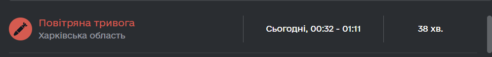 В 00:37 Харківський міський голова Ігор Терехов повідомляв про сильні вибухи у Харкові. Вночі 24 квітня в області оголосили тривогу, яка тривала з 00:32 по 01:11.