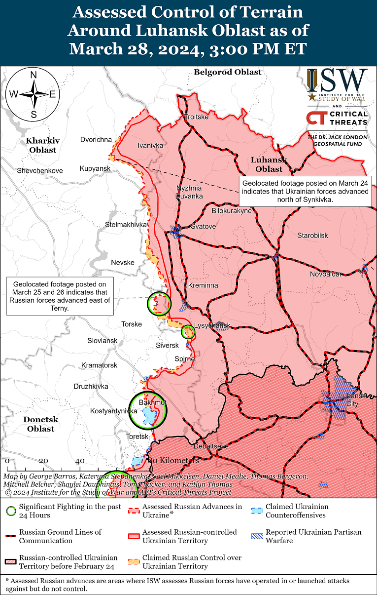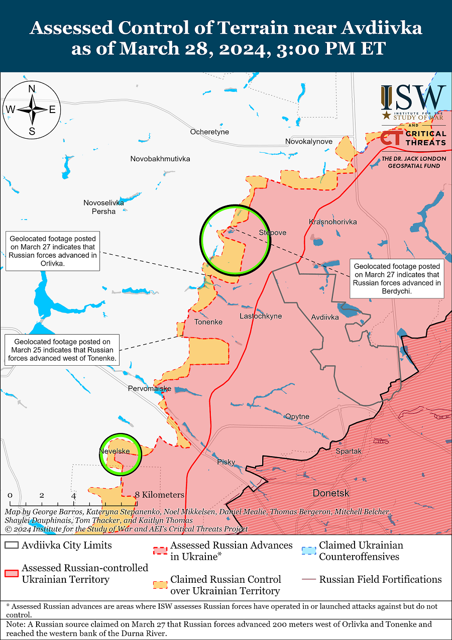 28 березня російські війська продовжували наступ у районі Старомайорського (на південь від Великої Новосілки) у районі кордону Донецької та Запорізької областей, але не просунулися вперед.