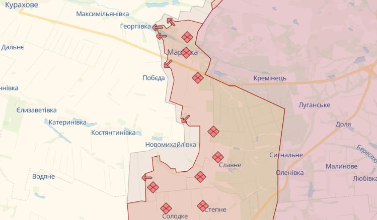 На Мар'їнському напрямку українські воїни продовжують стримувати супротивника поблизу Георгіївки, Перемоги та Новомихайлівки Донецької області, де відбито 20 атак.
