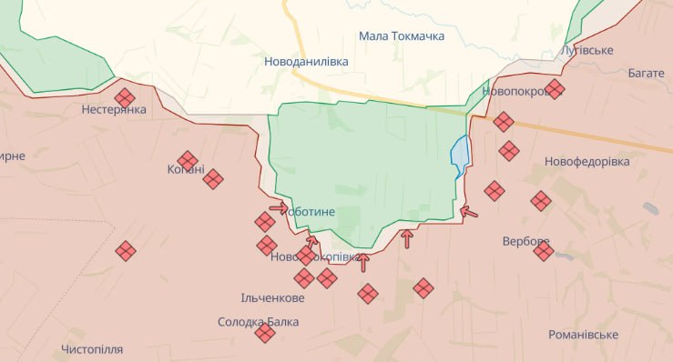 На Запорізькому напрямку Силами оборони відбито 4 атаки противника в районі Роботиного та на захід від Вербового Запорізької області.