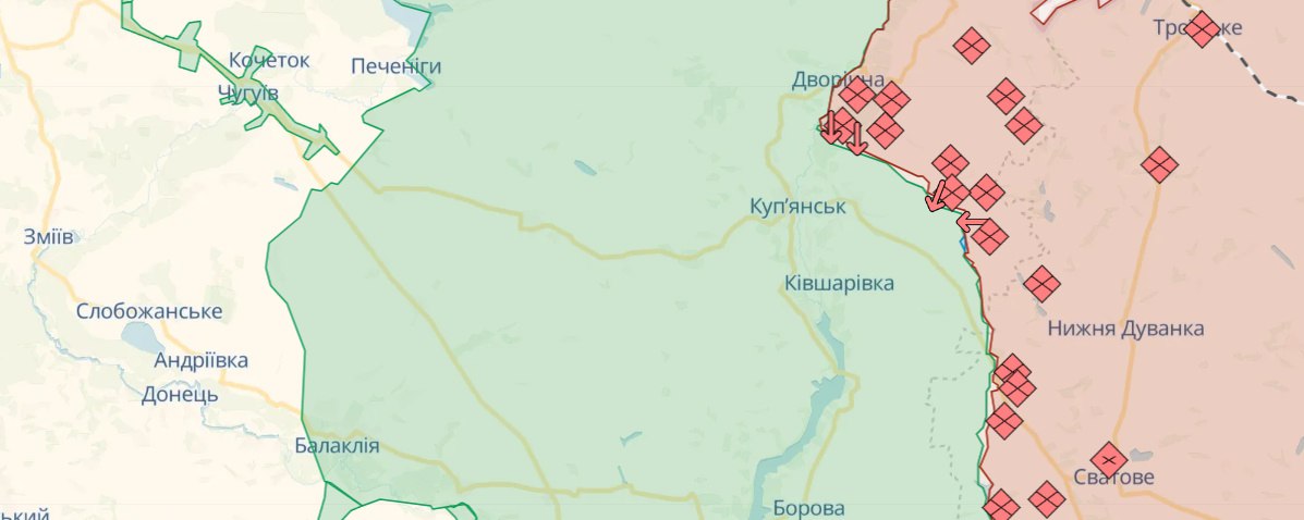 На Куп'янському напрямку ЗСУ відбили 2 атаки ворога в районі Синьківки Харківської області. Під артилерійським та мінометним вогнем опинилися 10 населених пунктів.
