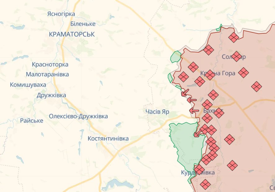 На Бахмутському напрямку, силами оборони відбито 13 атак противника в районах Богданівки, Кліщіївки, Андріївки та Північного Донецької області. Під артилерійським та мінометним вогнем опинилися близько 10 населених пунктів.