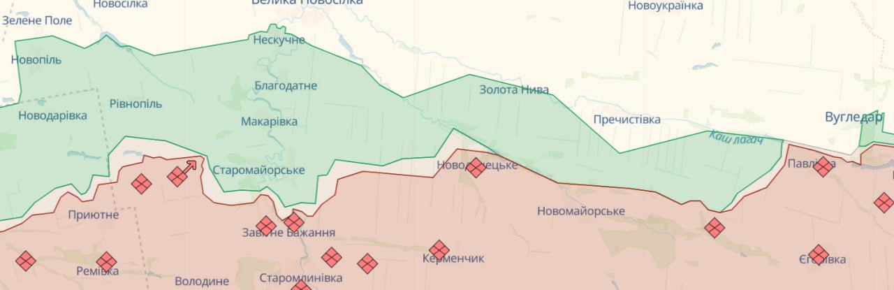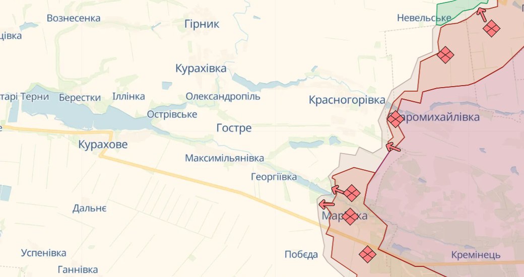 На Мар'їнському напрямку сили оборони продовжують стримувати ворога в районах Мар'їнки, Красногорівки та Новомихайлівки Донецької області, де противник здійснив 12 безуспішних атак на позиції наших захисників.
