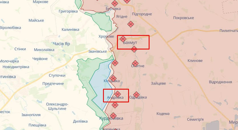 "На Бахмутському напрямку наші війська продовжують вести наступальні дії північніше та південніше міста Бахмут. В ході наступально-штурмових дій наших воїнів противник вимушено відійшов з позицій в районі Андріївки", - йдеться у повідомленні.