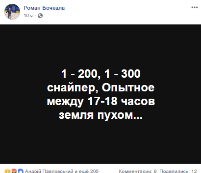 Як повідомив військовий журналіст Роман Бочкала в Facebook, боєць ЗСУ загинув від кулі снайпера 4 лютого близько 18.00 в районі Опитного.