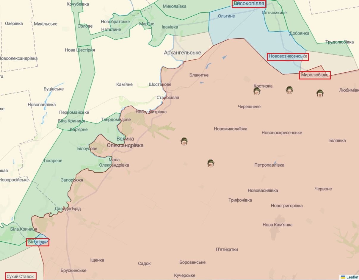"Населені пункти Херсонщини - Високопілля, Нововознесенське, Білогірка, Миролюбівка і Сухий Ставок - офіційно підтверджено звільнення від окупантів", - йдеться у повідомленні.