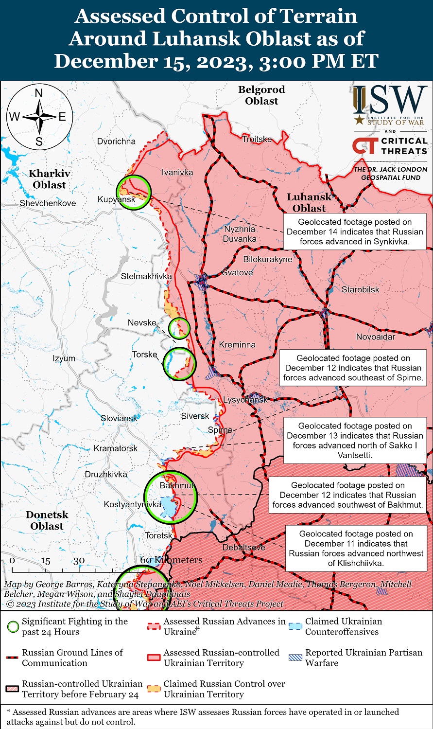 Російські війська провели наступальні операції під Куп'янськом і просунулися у північній частині Синьківки. Підрозділи російських військ витіснили українські війська з позицій і безуспішно атакували на схід від населеного пункту.