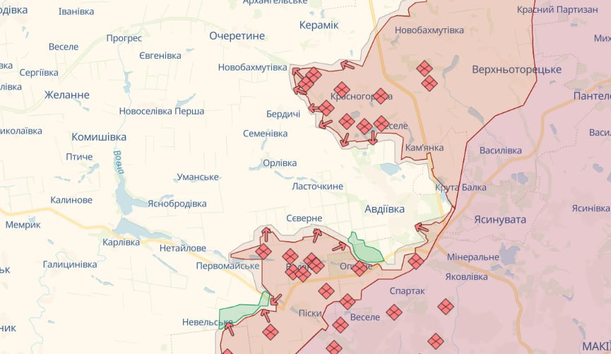 "Так, Сили оборони протягом минулої доби відбили 8 атак противника поблизу Новобахмутівки, Бердичів, Авдіївки та ще 16 атак в районах Первомайського та Невельського Донецької області. Південно-східніше Новобахмутівки наші захисники покращили тактичне положення", - йдеться у повідомленні. Також наші захисники покращили тактичне положення на південному сході від Новобахмутівки.