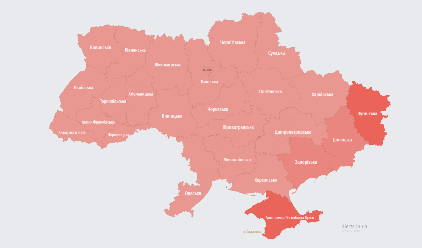 Близько 13-ої години у вівторок, 22 серпня, по всій Україні оголошено повітряну тривогу. В Повітряних силах попередили про ракетну небезпеку для всіх областей.