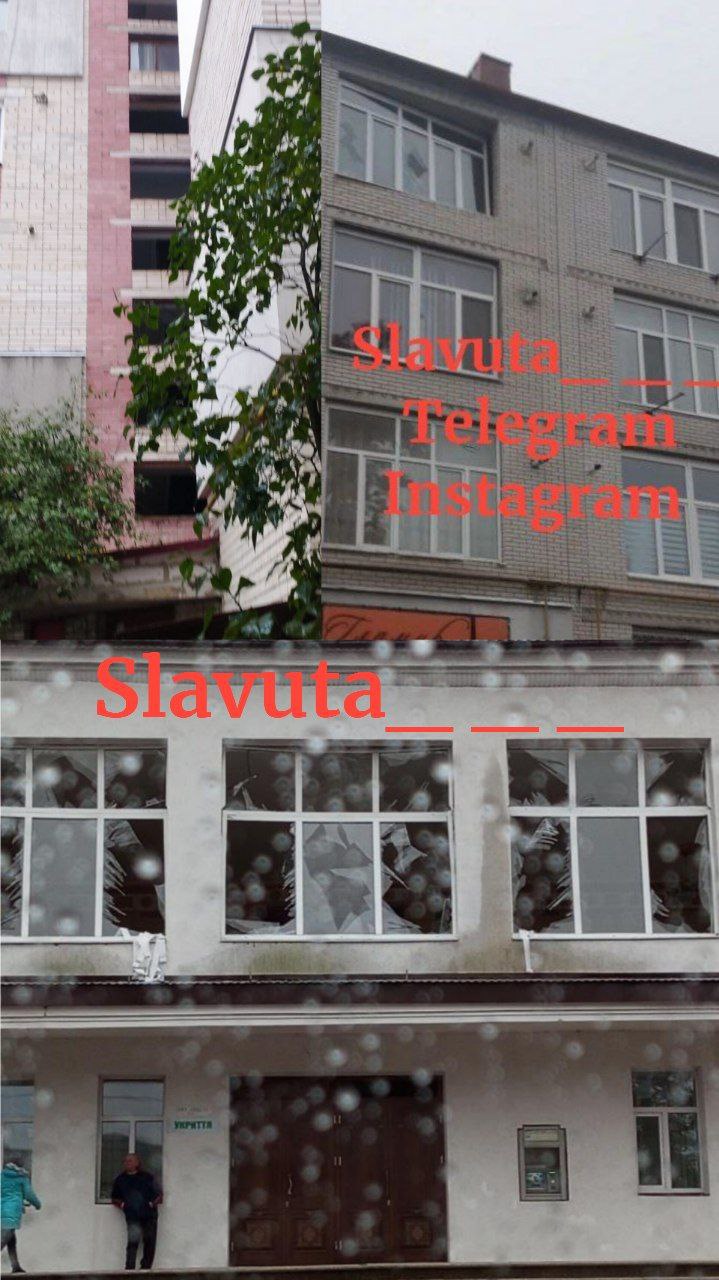 Окрім того, у місцевих пабліках поширюються фотокартки пошкоджень залізничного вокзалу та середньої школи у м.Славута після атаки російських безпілотників.